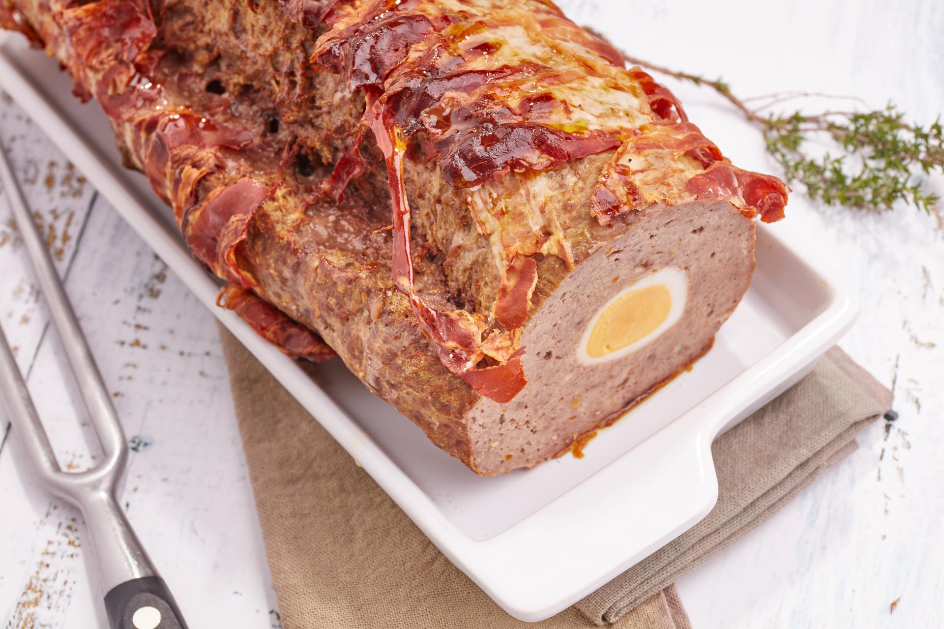 Place the shelled boiled eggs and roll the meat using the paper, while tightening tightly, to form a kind of sausage with the eggs in the center. Roll the paper borders that protrude like a candy.