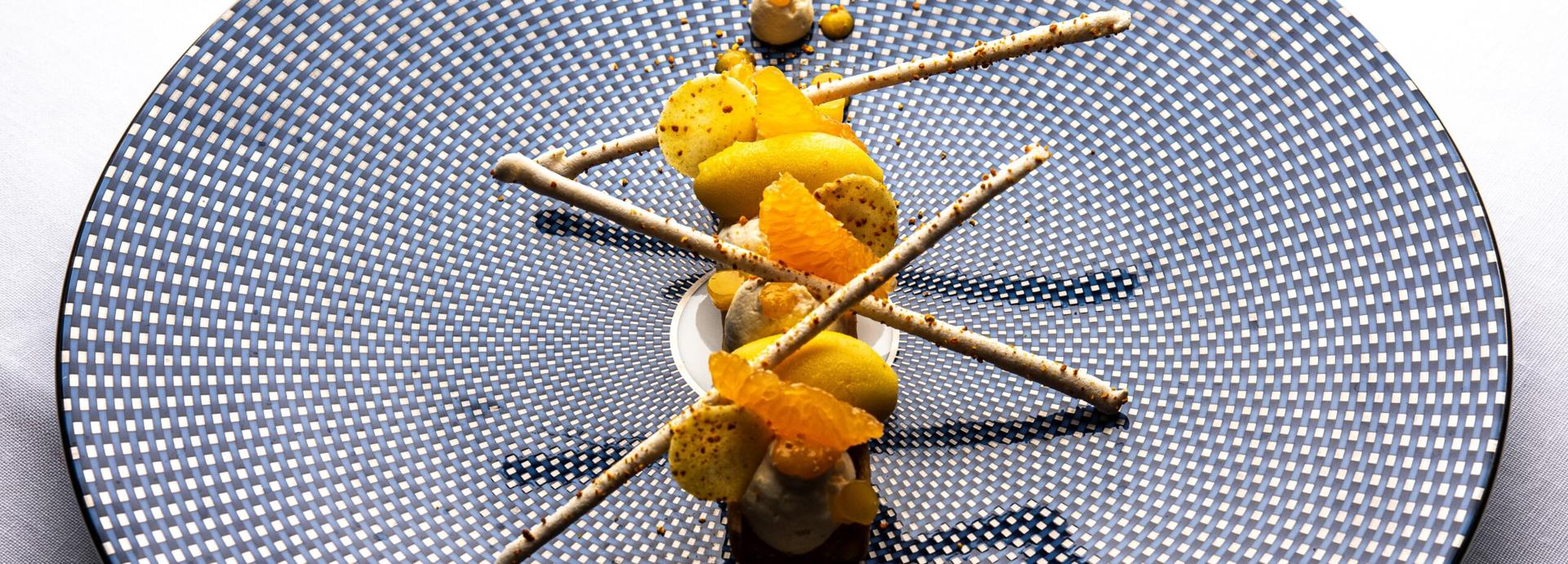 Melt the chocolate at 40°C in a bain-marie, then add the butter. In the bowl of the robot with the whisk, beat the egg yolks with the first sugar weighing. In a second bowl of the robot with the whisk, first whip the whites with one-third of the second weighing of sugar, then, while continuing to whisk, add the remaining two-thirds of sugar. Pour the beated egg yolks over the melted chocolate/butter mixture and mix with a whisk. Replace the whisk with the spatula, add the mounted egg whites and stir gently so as to obtain a light preparation. Use immediately . Preheat your forced-air oven to 160°C. On a baking sheet covered with a sheet of silicone paper, spread the biscuit evenly over a surface of 50x15 cm sing a bent pallet. Bake and cook for about 15 minutes. Out of the oven, remove the cookie sheet directly on a rack. Once the biscuit has cooled, cut a strip of 50x6.5 cm and a strip of 50x6 cm and set them aside.