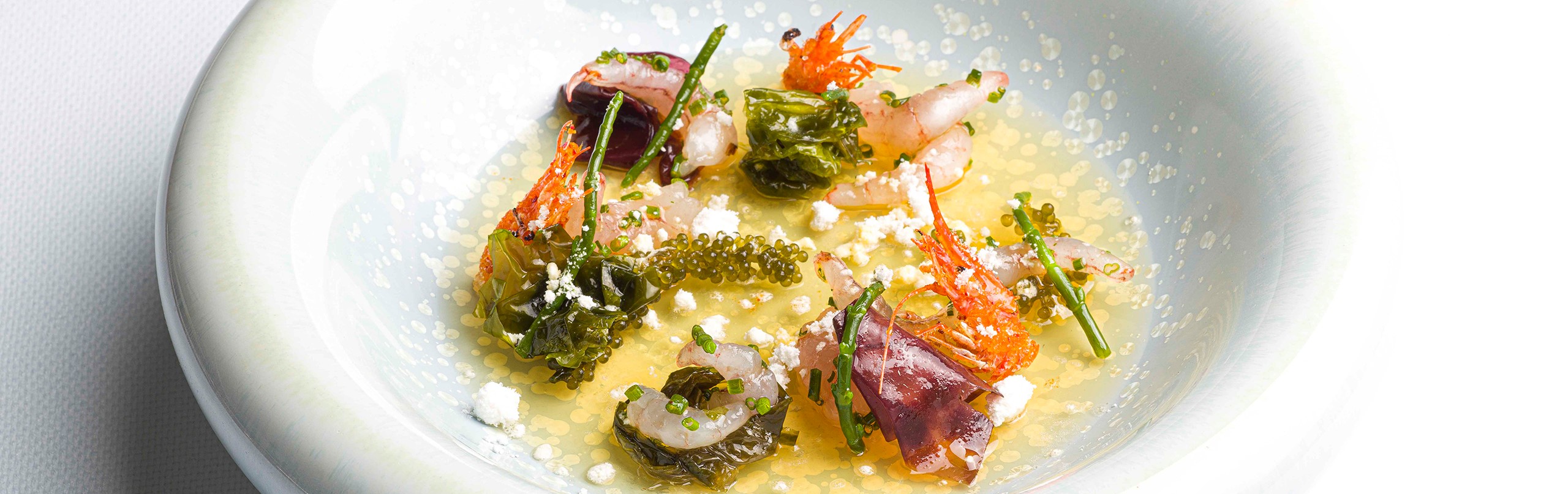 Bouquet di gamberetti in gelatina fine e alghe marine